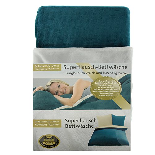 Gözze - Parure de Lit Réversible, Feeling cachemire, Housse de couette : 135 x 200 cm, Taie d'oreiller : 80 x 80 cm, Microfibre - Pétrole/Blanc laine