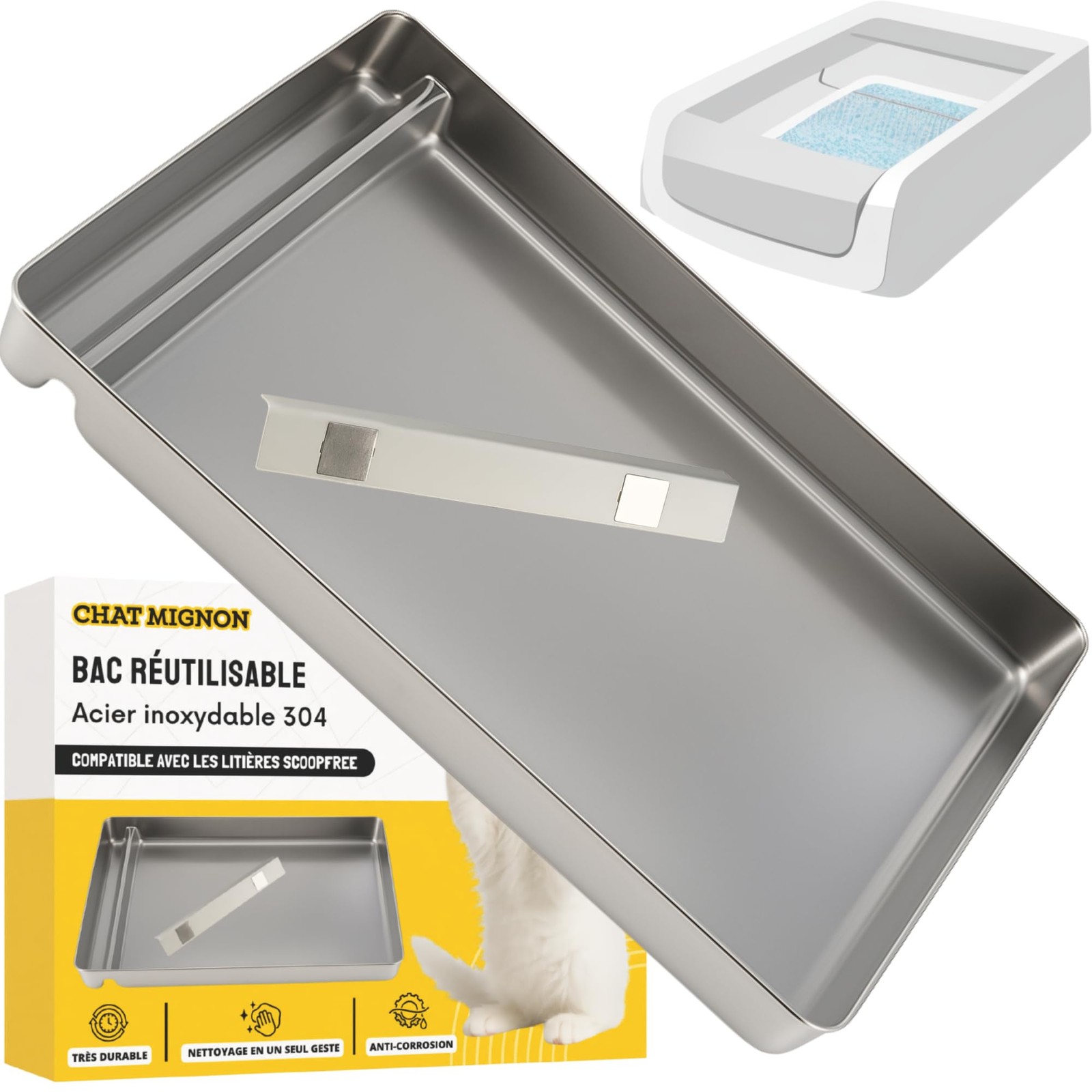 Bac à Litière Réutilisable en Acier Inoxydable 304, Compatible avec Pet-Safe ...