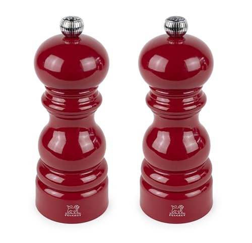 PEUGEOT - Duo Paris - Moulin à Poivre + Moulin à Sel 15 cm - Réglage Classique - Bois Revalorisé Labellisé PEFC - Fabrication Française - Coloris Rouge Passion