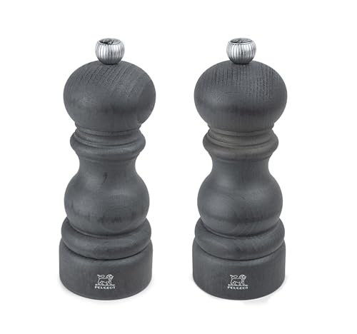 PEUGEOT - Duo Paris - Moulin à Poivre + Moulin à Sel 15 cm - Réglage Classique - Bois Revalorisé Labellisé PEFC - Fabrication Française - Coloris Graphite