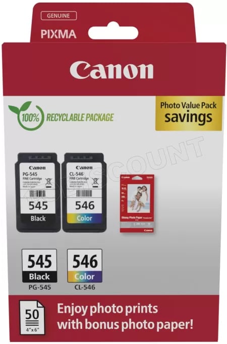 Pack 2 cartouches d'encre CANON PG-545/CL-546 + 50x Papiers photo