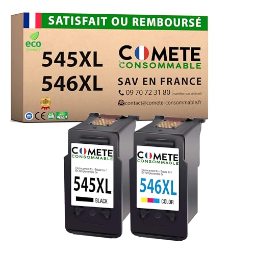 COMETE, Marque Française - 545XL 546XL - 2 Cartouches d'encre Compatibles avec Canon PG-545 CL-546 XL - pour Canon Pixma MX495 TS3150 TS3151 MG2550S MG3050 MG2950 MG2450 TR4550 (Noir et Couleur)