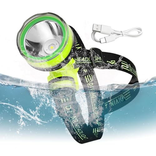 MeevrgR Phare sous-marin pour la pêche de nuit, lampe frontale de plongée 350 m avec étanchéité IPX8 et 2 modes d'éclairage, noir + vert Q901
