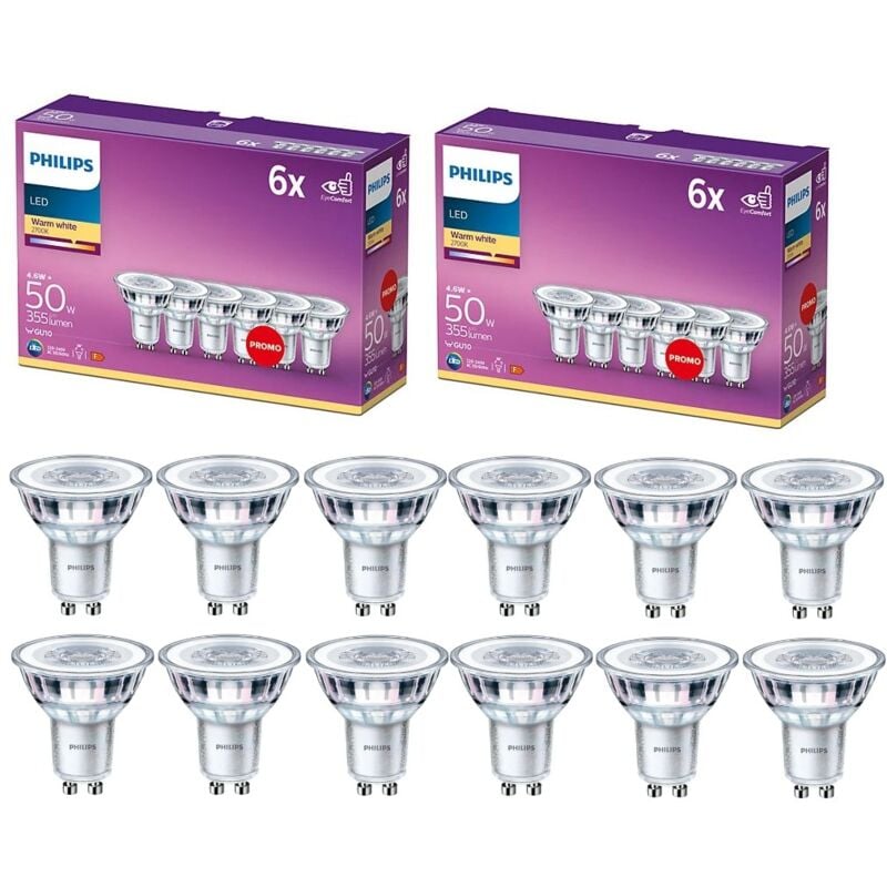 Philips LED-spotlight klar finish GU10 4,6 W varmt vitt ljus 2700 K (paket om 6)