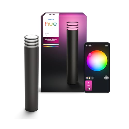 Philips Hue Lucca Borne Extérieur, Lumière Blanche et Multicolore Personnalisable, 1100 lm, Ampoule LED A60 Incluse, Luminosité Variable, IP44 Résiste aux Intempéries, Compatible Matter, Zigbee