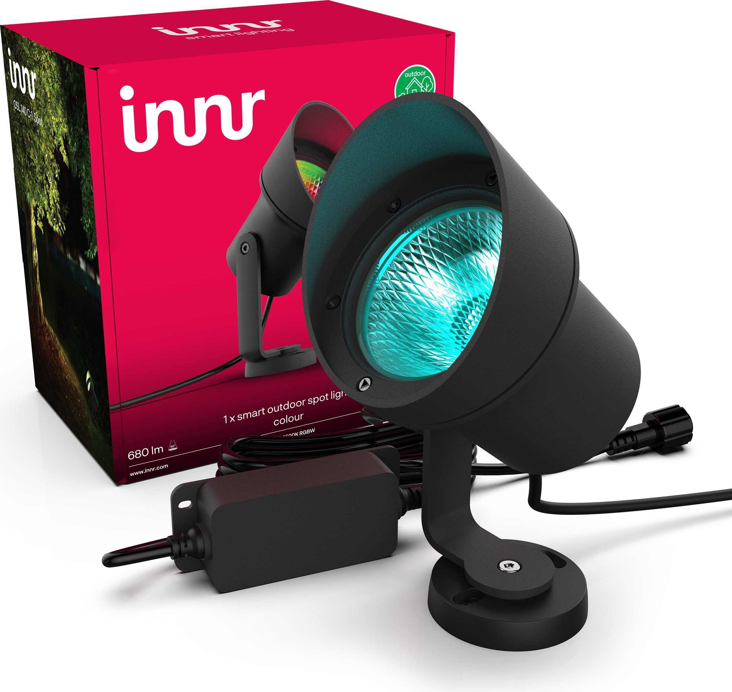 Innr Projecteur de jardin XL, fonctionne avec Philips Hue*, Zigbee Smart Outdoor Spot White & Color, set complet avec 1 lampe d'extérieur