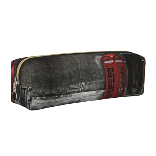 NBHDZENGW Phone Booth in London Streets Trousse à crayons en cuir avec fermeture éclair lisse, élégante et durable pour l'école, le bureau, les voyages - Porte-papeterie léger avec impression complète