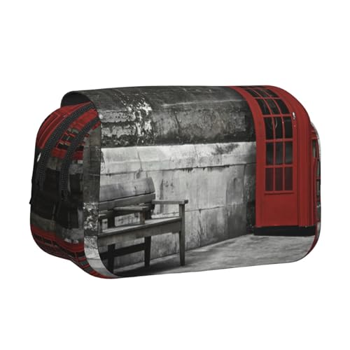 HEBSDFG Red Phone Booth Trousse à crayons haute capacité avec emplacements pour stylos et pochettes pour l'école, les voyages et le maquillage Noir, Noir , Taille unique, Cartable