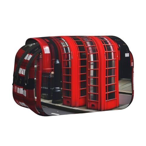 HEBSDFG Red Phone Booth Trousse à crayons haute capacité avec emplacements pour stylos et pochettes pour l'école, les voyages et le maquillage Noir, bleu, Taille unique, Cartable