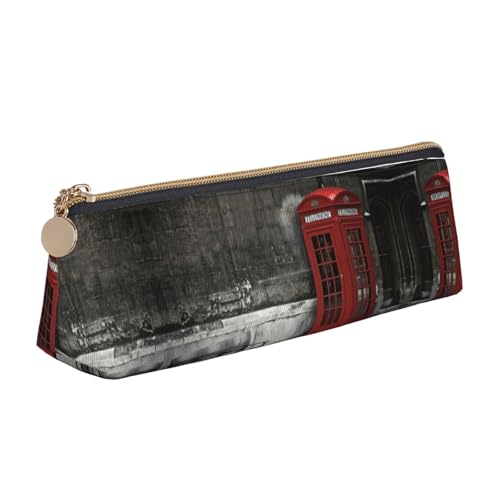 NBHDZENGW Phone Booth in London Streets Trousse à crayons triangulaire en cuir avec fermeture éclair lisse, élégante et durable pour l'école, le bureau, les voyages - Porte-papeterie léger avec