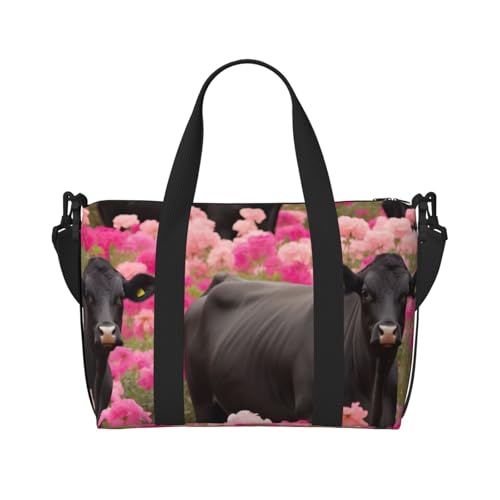 Red Phone Booth London Street Print Sac de voyage léger et résistant à l'eau Sac de sport et de voyage pour hommes, femmes et adolescents, Flower Show Steer Vaches Bovins, Taille unique, Sac de voyage
