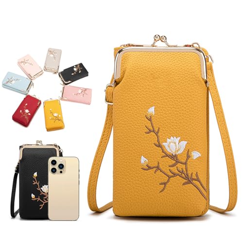 Générique Women Sling Cross-Body Wallet with Mobile Cell Phone Holder, Phone Bags For Women Crossbody, Mini Shoulder Purse Pocket, for Daily Adventures, Work, or Traveling (Yellow,Mini)