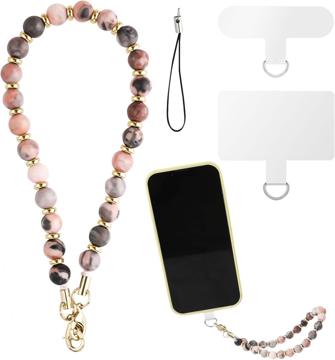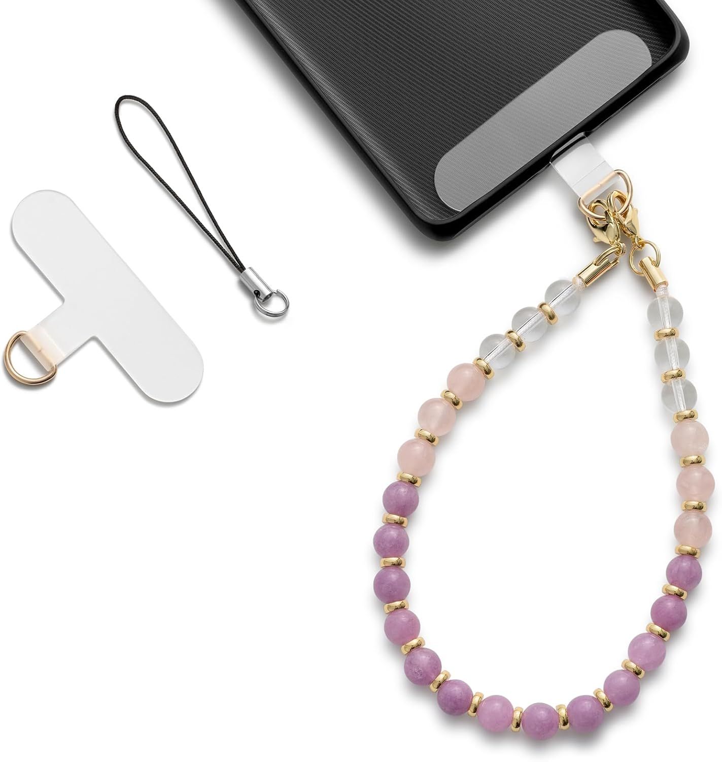 Pearl Stone Phone Strap, Cell Phone Lanyard With 2 Detachable Tabs Chain Bracelet Phone Beads For Women Girls (Pink), Stone, No Gemstone