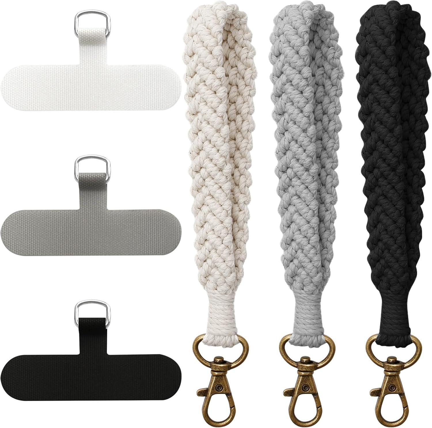 Pack Of 3 Cell Phone Wristbands, Phone Case Strap, Macrame Boho Phone Lanyard, Black, White And Grey, Wrist Phone Key Chain, Cotton