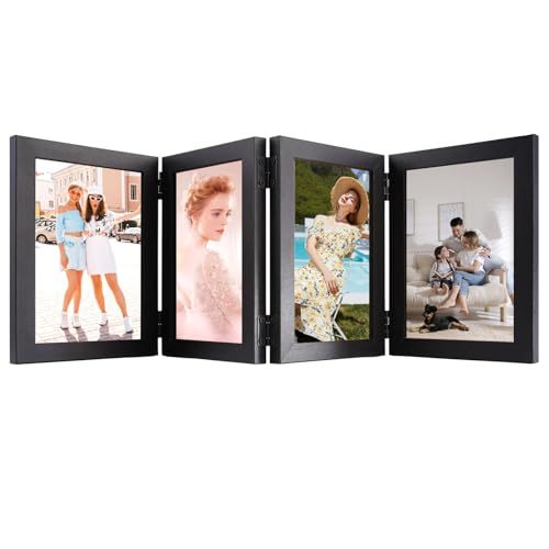 Cadre Photo Pliable pour 4 Photos,Cadre Photo 10x15cm en Bois,Cadres 4 Photos avec Charnières et Panneaux Transparents,Cadres 10x15cm pour Décoration Intérieure,Cadeau Anniversaire ou Mariage(Noir)