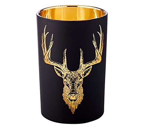 EDZARD Photophore en Verre, pour Bougie, Chauffe-Plat, Motif de cerf, extérieur en Noir et intérieur doré, Hauteur : 18 cm, diamètre : 11,5 cm