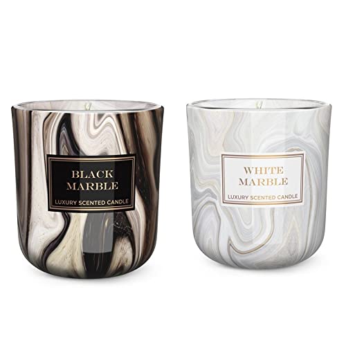 Dekohelden24 Lot de 2 bougies parfumées – Photophore – En verre – Parfum marbre blanc et noir Marble, L/l/h 8,5 x 8 x 8,5 cm, 150 g par bougie