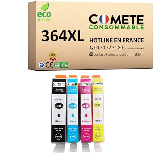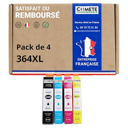 COMETE, Marque française - 364XL - 4 Cartouches d'encre Compatibles avec HP 364 XL - pour HP Photosmart 5510 5520 B109a Deskjet 3070A 3520 Officejet 4620 4622 (1 Noir et 3 Couleur)