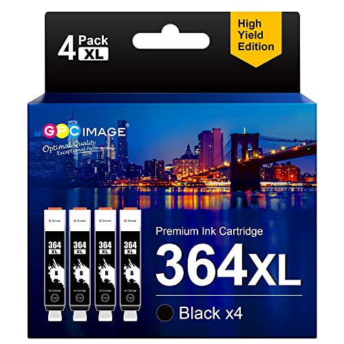 GPC Image 364XL Compatible Cartouches d'encre Remplacement pour HP 364 XL pour Photosmart 5510 5520 5522 5520 6520 B8550 7510 7520 5515 B109a B110a Officejet 4620 Deskjet 3070A (Noir, 4-Pack)