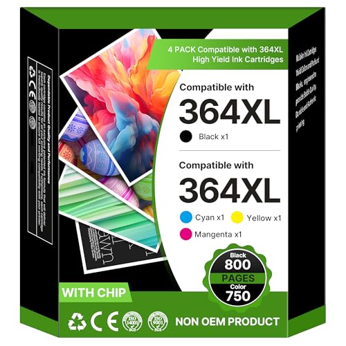 Ouguan Cartouches d'encre 364 XL Compatible pour Compatible avec HP Photosmart 5510 5512 5515 5520 5522 6510 6520 6512 7510 7520 B110a B110c B010b B111a B109a HP 3070A 3520 HP 4620 4622