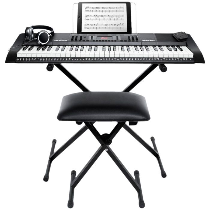 Alesis Melody 61 Piano Numérique 61 Touches pour Débutants avec Haut-Parleurs, Support, Banc, Casque, Pupitre, 300 Sons et des Leçons de Musique