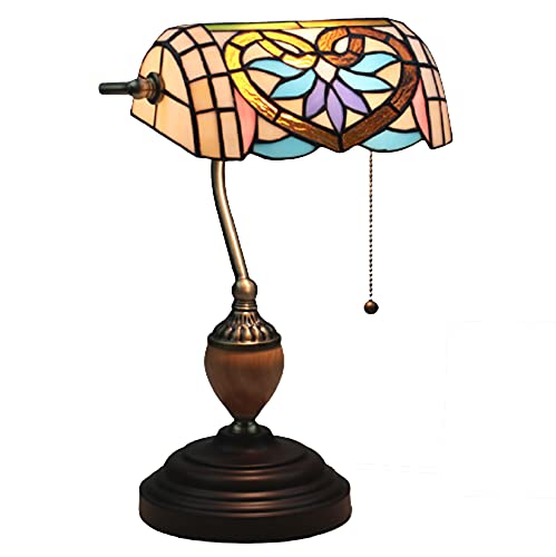 Lampe de banquier en vitrail de Style Retro Art Stained Glass, Lampe de Table Baroque, Lampe de Piano de Chevet Vintage pour Chambre à Coucher, café, Bar, Bureau, Lampe de Bureau, Base en Alliage de