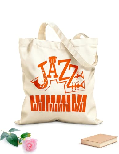 XIARON Sac en toile à fond renforcé Musique de bar jazz, piano abstrait, instruments de musique tissu épais de 340g/m² Utilise comme sac cadeau L Café