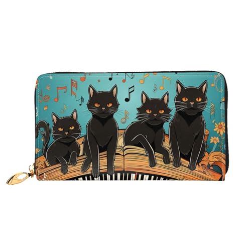 Porte-monnaie en cuir pour femme avec verrou de baiser, motif chats allongés sur le clavier du piano
