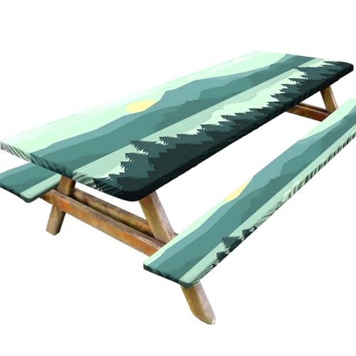 Gcroet 3pcs / Set Picnic Table Cover avec couvercles de Banc de 8 Pieds Couvre-Table Pique-Nique imperméable avec Nappe Camping Facile à Nettoyer pour Le Camping en Plein air, Style 1.
