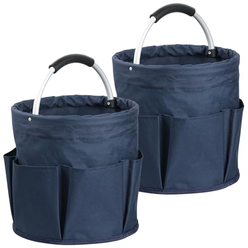 IHOMAGIC Set of 2 Sac a Outils Pliable, 17L Panier Picnic avec Poignée et 6 Poches, Sac de Plage Portable en Tissu Oxford 600D, Panier Rangement Durable pour la Douches, le Nettoyage, Bleu Marine