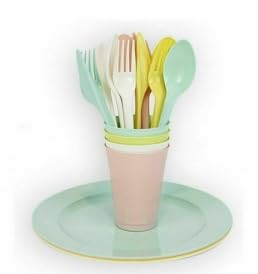 Set Picnic Vaisselle pour 4 Gens - 25 Pièces - Réutilisable, Incassable - C -