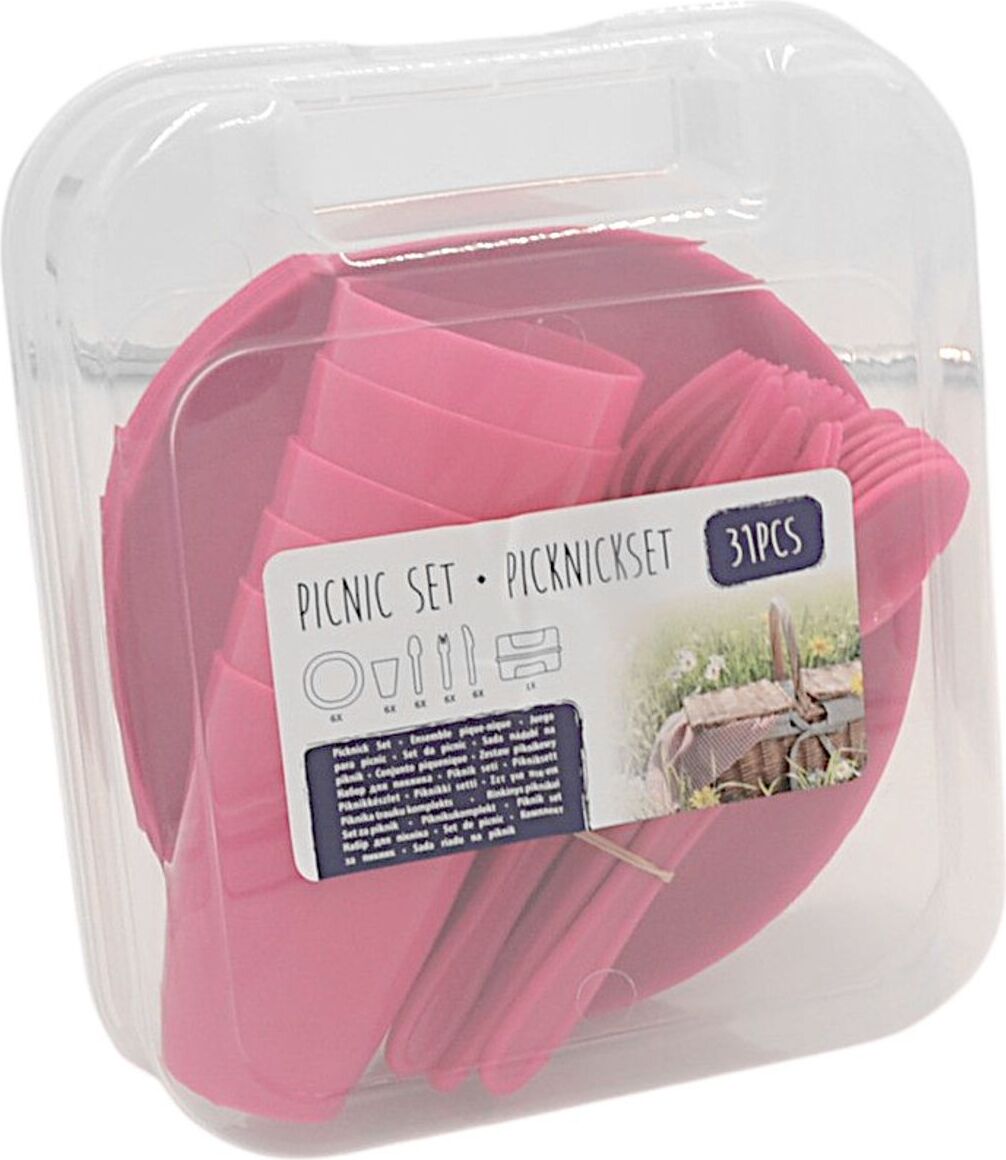 Picnic Geschirr Set 31-tlg. Campinggeschirr Festival-Set Outdoor Besteck, Farbe:pink