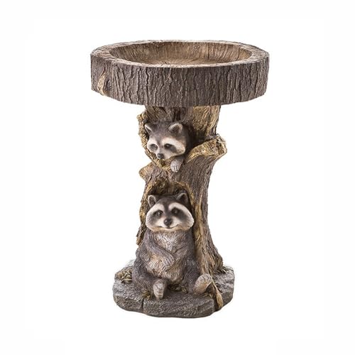 Décorations extérieures pour cour raton laveur, sculptures et statues de cour ornement en résine aspect bois bain d'oiseaux sur pied, bol de bain d'oiseaux, mangeoires pour oiseaux, statue de pelouse