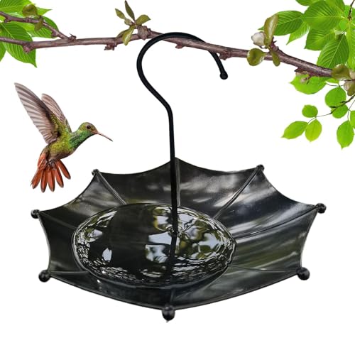 Mangeoires à oiseaux – Gamelle en métal sur pied | Bain d'oiseaux en résine | Décorations de cour réutilisables en forme de parapluie | Bol d'eau vintage | Ornements de jardin pour parterres de fleurs