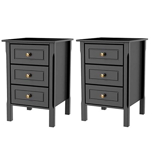 Yaheetech 2 x Tables de Chevet en Bois Noir avec 3 Tiroirs Pied en Bois de Pin Tables de Nuit Moderne 40 x 40 x 60cm Table d'Appoint Salon Chambre