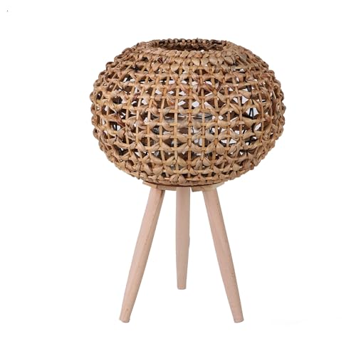 NATURAL LIVING Lanterne EKLA en ROTIN avec Pied en Bois D31CM X H46CM