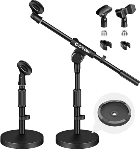 CAHAYA Pied de Microphone de Bureau 2 en 1 avec Deux Clips Deux Cache-câble base stable en fer 1058g Hauteur réglable à 180° Réunions Discours en direct Diffusion Karaoké Enregistrement CY0360