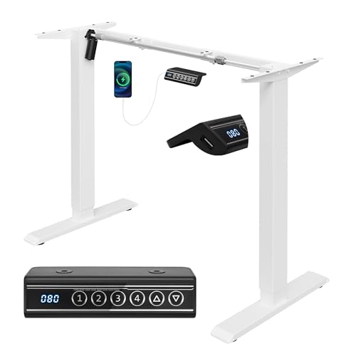 Desktronic HomePro Pied de bureau électrique réglable en hauteur, blanc, avec fonction mémoire, technologie anti-collision, ports de charge USB-A et USB-C