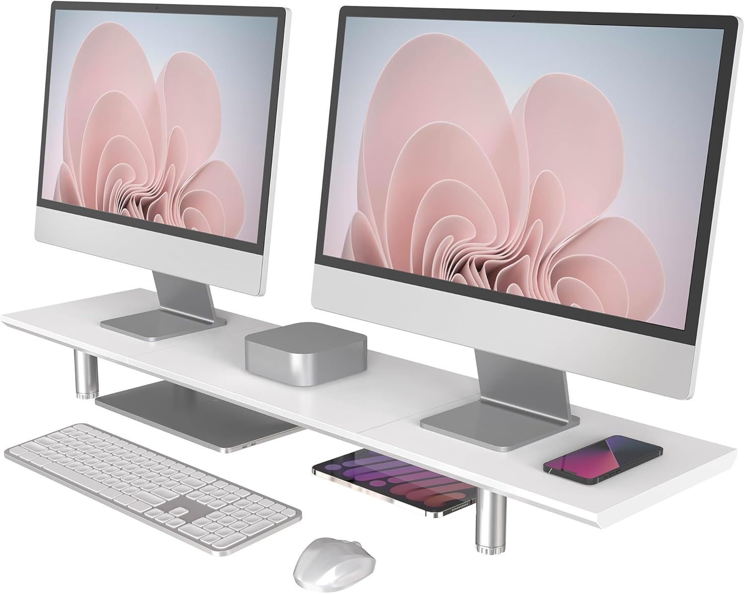 Fenge Grand support pour écran 100cm Dual Monitor Stands Riser avec pied réglable en hauteur,Support d'ordinateur multifonctionnel pour PC/ordinateur portable/TV, 100x23.5x(9.2-11.2) cm Blanc