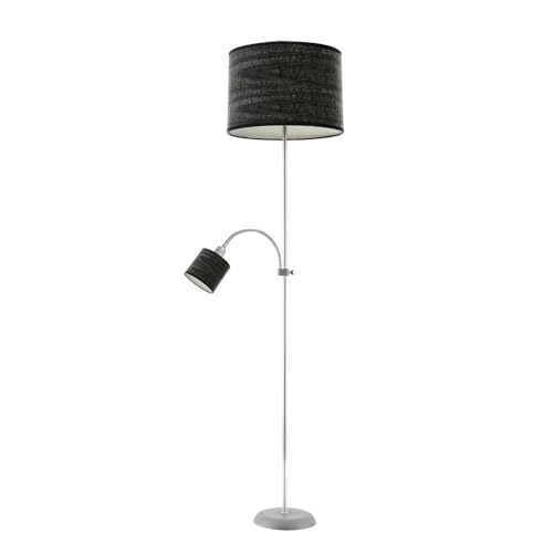 PRENDELUZ Pied de salon en bois noir avec lecteur, 1 x E27 et 1 x E14, dimensions 155 x 40 x 40 cm, idéal pour un éclairage décoratif et fonctionnel.