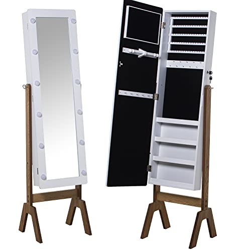 DRW Miroir à bijoux sur pied en bois avec lumières néon blanches et naturelles 40 x 37 x 155 cm, INT. 25 x 109 cm