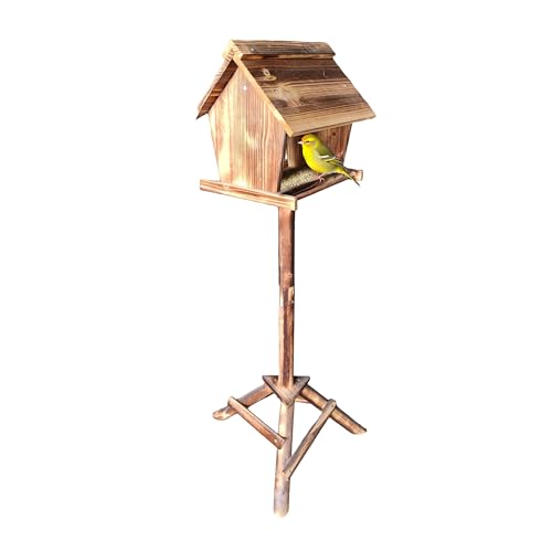 Relaxdays Mangeoire à Oiseaux sur Pied, en Bois de Sapin, Jardin, Balcon, Dimensions H x L x P : 107 x 32 x 27 cm, brûlé