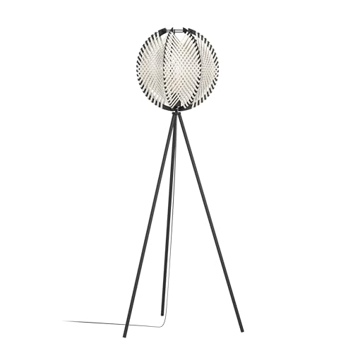 Eglo Lampadaire trépied Hykeham, luminaire intérieur sur pied en bois bambou naturel et métal noir, lampe de salon à pied avec douille E27