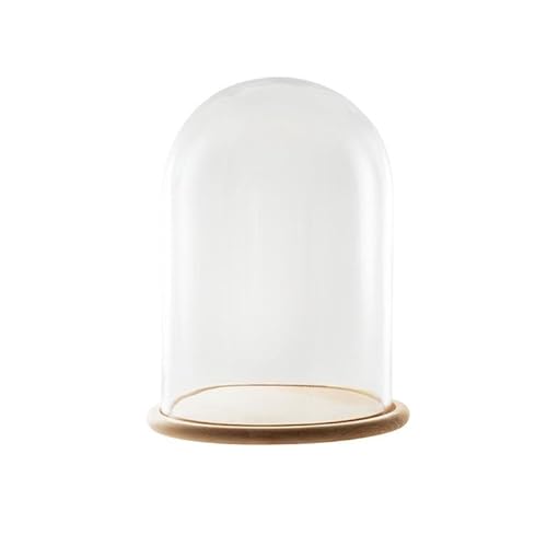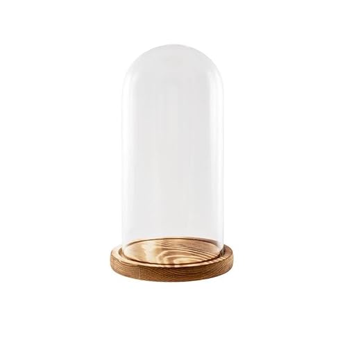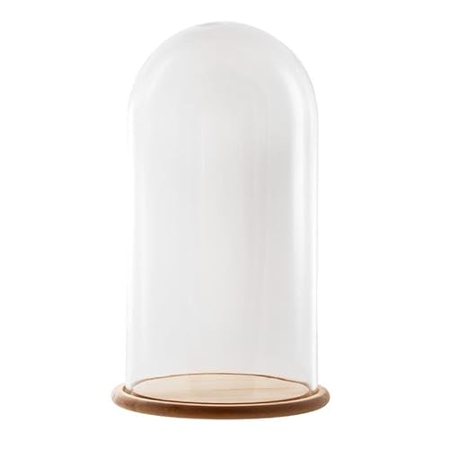 Fanal en Verre Transparent avec Pied en Bois 15 x 15 x 26 cm
