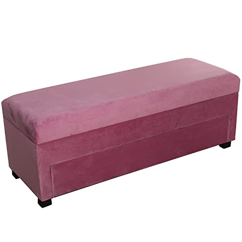 DRW Banquette Meuble à Chaussures Pied de lit en Bois et Tissu Rose 120 x 43 x 45 cm, Multicolore, estandar