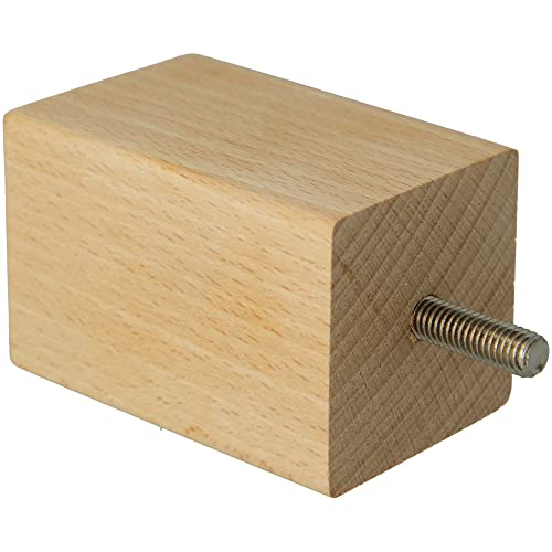 Amig - Pied Carré pour Meuble, Pied en Bois de Hêtre avec Finition Naturelle, Pieds de Remplacement pour Canapés, Lits, Tables, Fixation : Tige Métallique Métrique 8, Dimensions : 50 x 50 x 80 mm
