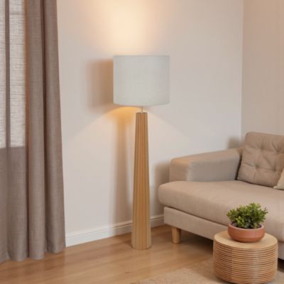 Lampadaire Cesar pied en bois et abat-jour effet lin 15W IP20 H.167 x Ø44 cm Corep