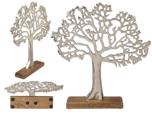 Gilde Figurine décorative Arbre de Vie en Aluminium argenté sur Pied en Bois 46 x 49 cm