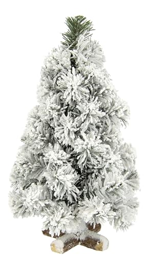 Flair Flower Mini Sapin de Noël Artificiel sur Pied en Bois - Vert/Blanc - 16 x 16 x 30 cm
