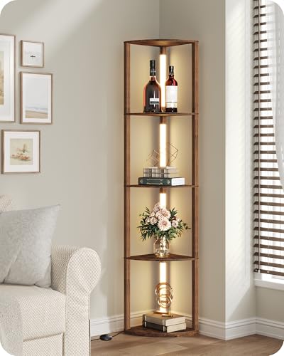 GOEBLESON Lampadaire sur pied avec Étagères en Bois, Étagère d’Angle pour Salon,20W LED Lampe sur Pied Réglable, Barre Lumineuse Pivotant à 360°, pour Chambre, Bureau, Marron Rustique ZF54LDD05N1